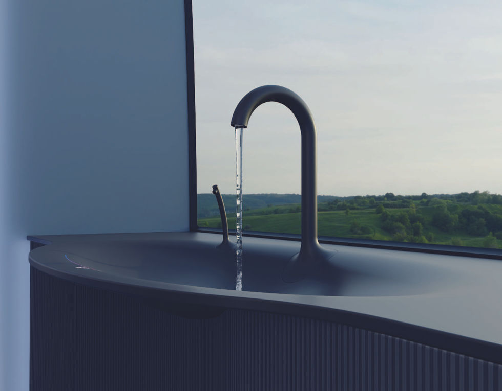 Die Temperatur des Wassers wird ebenfalls sensorisch gesteuert. Das Interface erscheint erst, wenn das Wasser läuft.